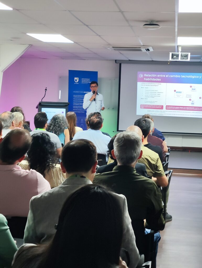 Por parte de CENIA, su gerente y director ejecutivo del Índice Latinoamericano de IA, Rodrigo Durán Rojas, valoró la iniciativa de la UTEM de abrir sus aulas al debate sobre políticas públicas y la articulación entre la academia y el sector productivo.