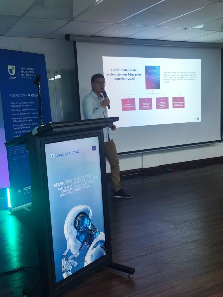 La actividad, organizada de forma conjunta por la Vicerrectoría Académica, la Dirección de Tecnología Educativa y Aprendizaje Continuo (DTEAC), la Dirección de Desarrollo Académico (DDA) y el Centro Nacional de Inteligencia Artificial (CENIA), se consolidó como un hito de formación en coherencia con el Modelo Educativo de la UTEM.