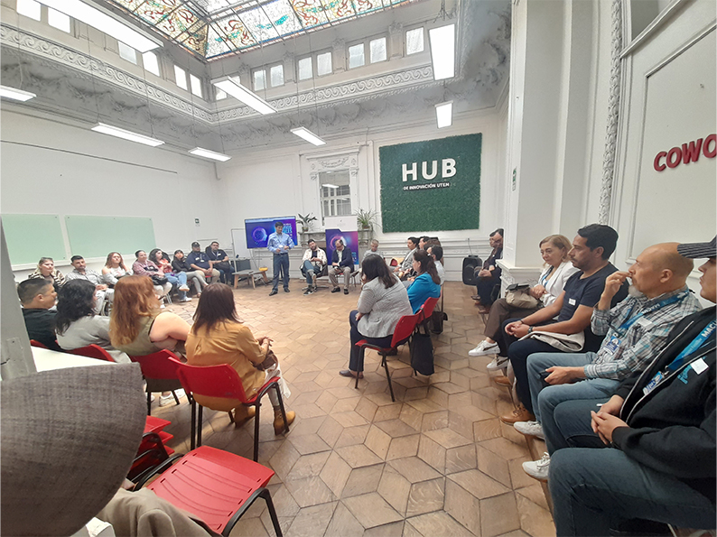 Como cierre, se realizó una visita guiada al HUB Innova UTEM, donde los asistentes conocieron proyectos, laboratorios y capacidades institucionales vinculadas a innovación, emprendimiento y tecnologías emergentes.