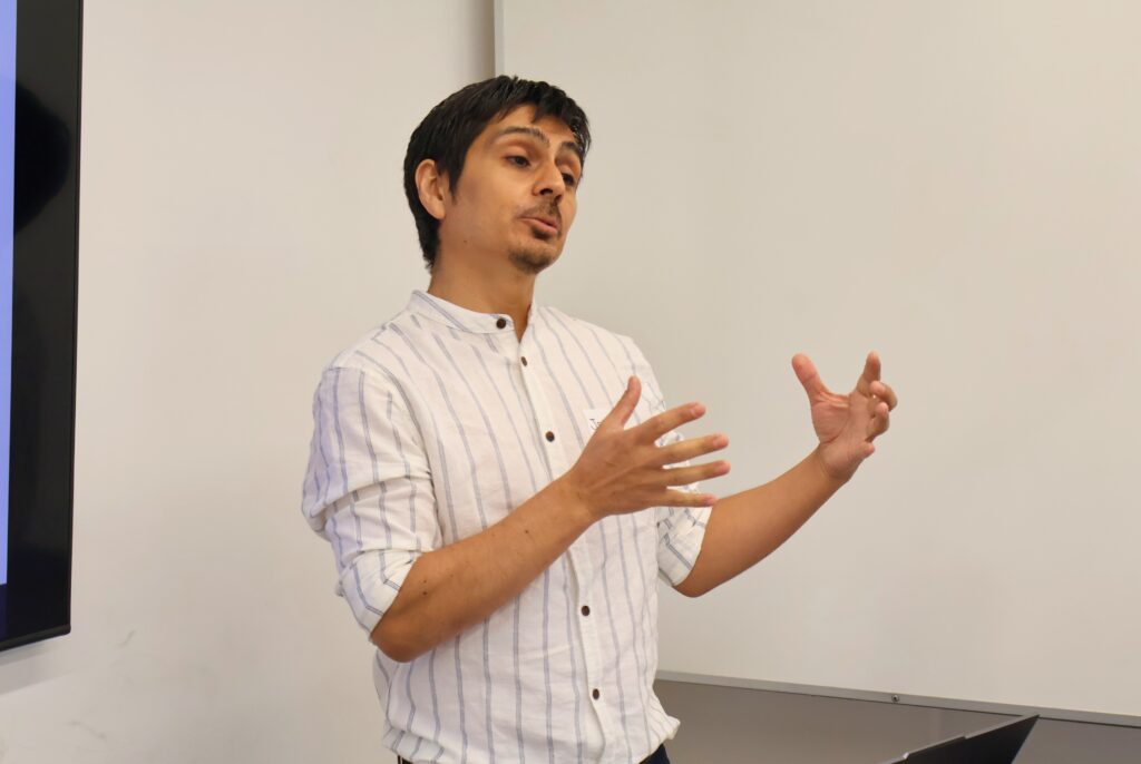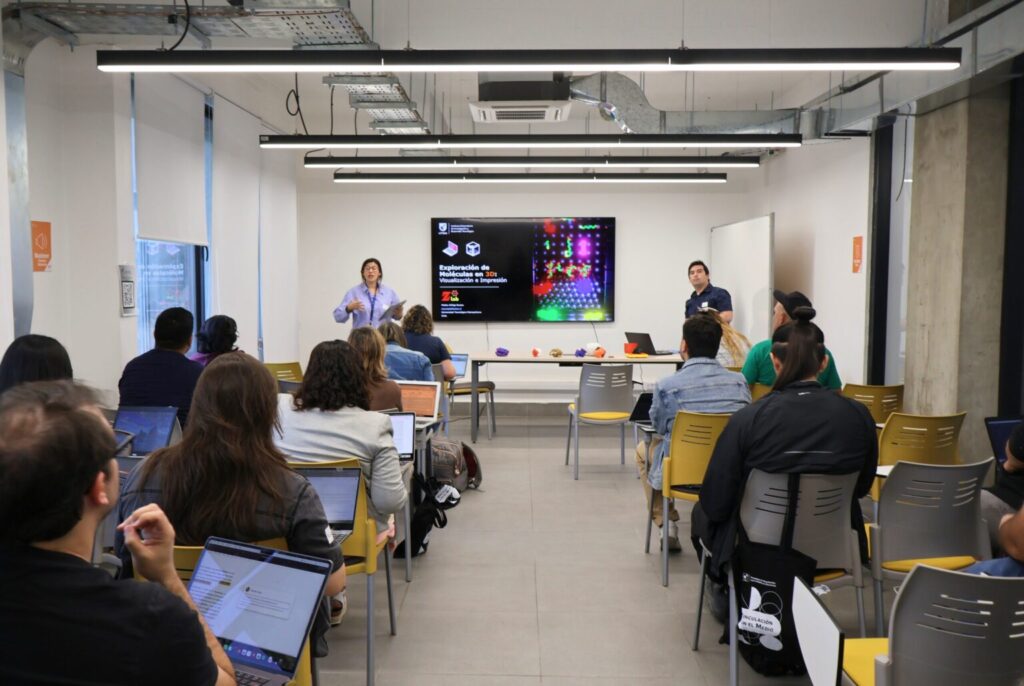 El programa contempló las exposiciones “Exploración de estructuras biológicas y químicas a través de la visualización e impresión 3D”, dictada por Matías Zúñiga Bustos, del IDT; “Inteligencia artificial aplicada a la enseñanza de ciencias”, realizada por Jorge Vergara Quezada, jefe de Ingeniería Civil en Ciencia de Datos; y “Aplicaciones de realidad virtual en el estudio de sistemas biológicos complejos”, a cargo de David Castro Salinas, docente del Departamento de Informática y Computación de la Facultad de Ingeniería, junto a Nicolás Muñoz Mora, Jaime Ugaz Riveros y John López Suárez, profesionales de la DTEAC.
