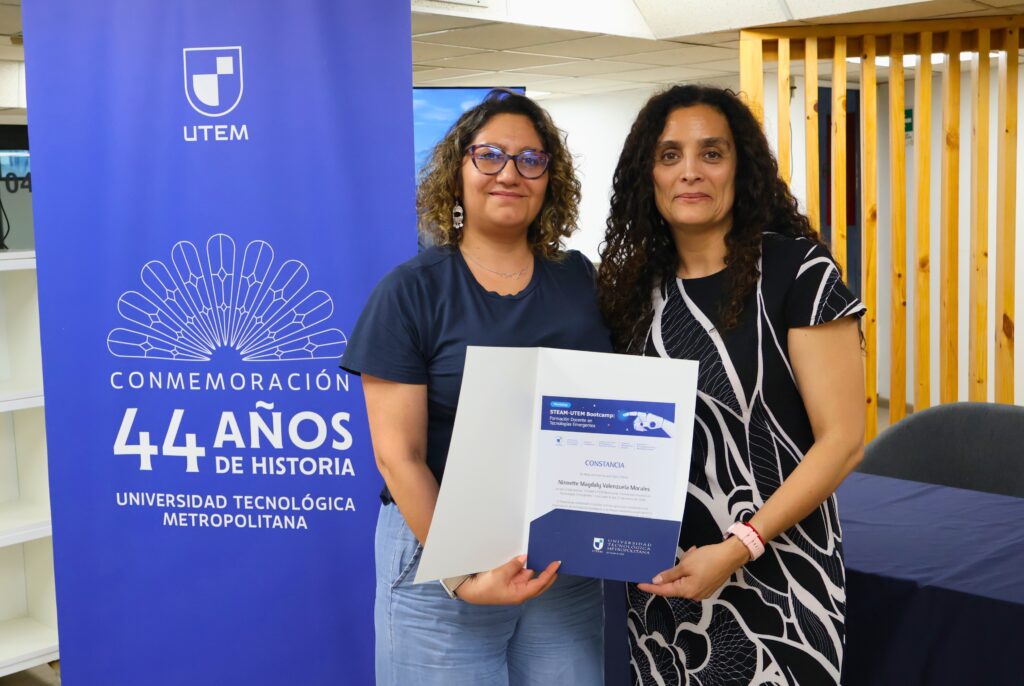 “Hoy las y los estudiantes llegan al aula con brechas importantes, y es responsabilidad de quienes enseñamos incorporar nuevas metodologías que dialoguen con esa realidad”, señaló Yohanna Palominos Marín, decana de la Facultad de Ingeniería, durante el evento llamado “STEAM-UTEM Bootcamp: Formación Docente en Tecnolgías Emergentes”.